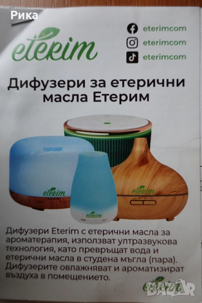 Ултразвуков дифузер за ароматерапия с етерични масла ЕТЕРИМ 120