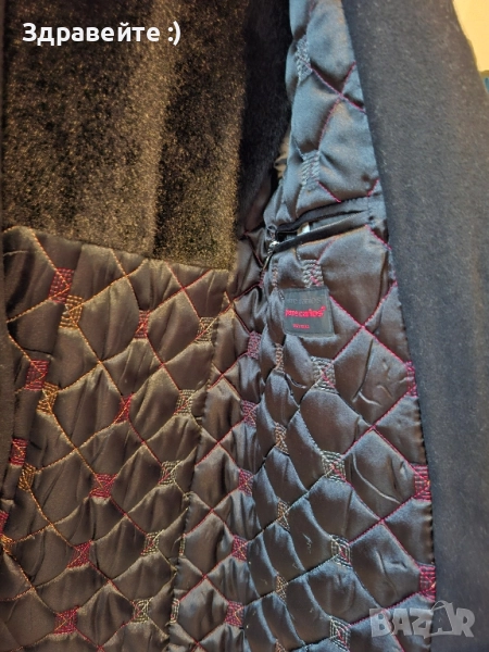 Палтото е използвано, но оригинално и много запазено, като забележки съм снимала, че е започнало да се лющи отзад на яката и по джобчетата самото покритие, има снимки на забележките, стои страхотно и много топли, дължината му е 94 см, а обиколката е около 115-120см