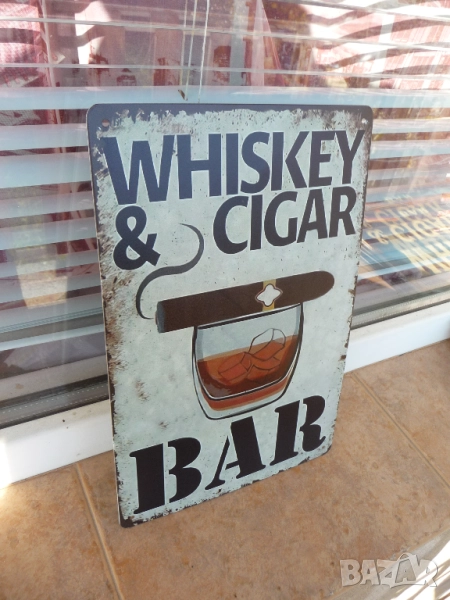 Метална ламаринена табела - Whiskey & cigar bar.