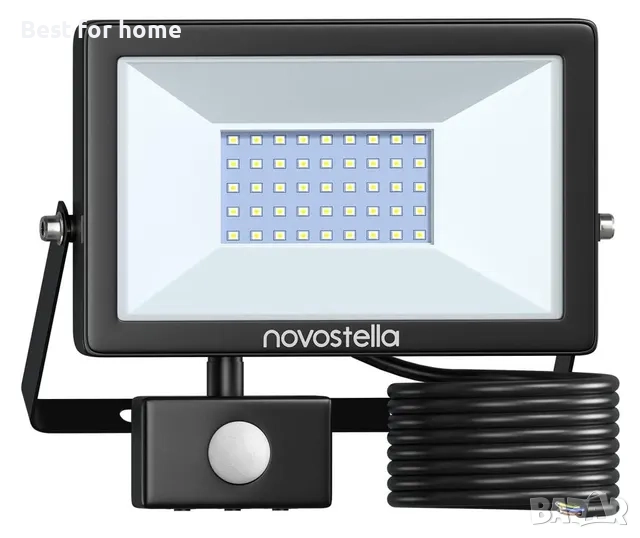 Комплект 2 Прожектора Novostella, LED, 30W, PIR Датчик За Движение, Черен