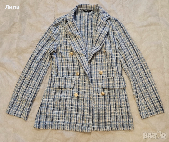 Дамски кариран блейзър / сако в син цвят. Размер S.