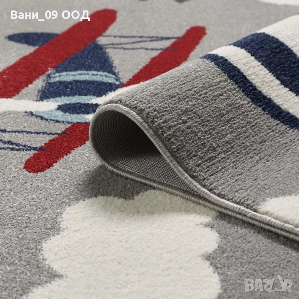 Килимът носи усещане за лекота, приключения и игри. Веселите мотиви стимулират въображението на децата, а неутралният сив фон го прави подходящ както за момчешка, така и за момичешка стая. Изработен от мека и приятна на допир материя, килимът осигурява комфорт и топлина при игра. Лесен за почистване и устойчив на износване, той е едновременно практичен и декоративен елемент.
