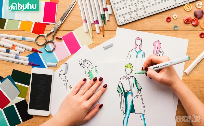 Ohuhu Fine Art Pens маркери с два писеца тип "Chisel" и "Fine", комплект 48 цвята, на алкохолна осно