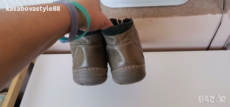 Леки, комфортни и ултра гъвкави дамски боти в маслинено-зелен цвят, изработени от естествена кожа в лицевата част. Отвътре имат топла подплата, което позволява да се носят и през зимния сезон. Обуват се с помощта на ципове, както и връзки за притягане. Ходилото в горната част е фабрично зашито за повече здравина и устойчивост. Дължина на стелка 25.6см.Ходило в най-високата част-3см.Цялостна височина отзад 11см.