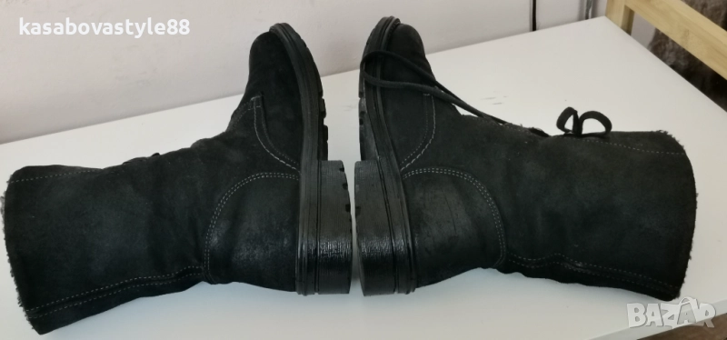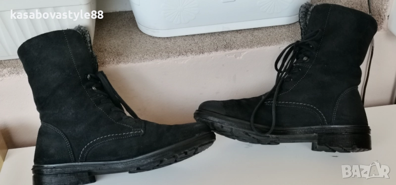 Дамски ултра комфортни ежедневни боти за зимата в черен цвят с изчистена визия, изработени от естествен велур, изцяло подплатени с топла подплата отвътре.Те са в перфектно състояние!! Ходилото е олекотено и еластично. Gore-tex мембраната предпазва от студ, влага и дъжд. Те са високи 19.5см.Ток-3см.Дължина на стелка 24.1см.