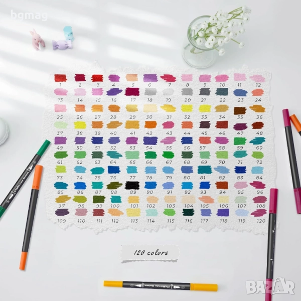 ✎ 120 ЯРКИ ЦВЯТА С НОМЕРА ЗА БЪРЗО ТЪРСЕНЕ НА ЦВЕТОВЕ: Този комплект маркери с двоен накрайник съдържа 120 живи цвята, всеки номериран, за да улесни намирането на любимите ви цветове. Освен това има празна DIY карта с цветове, която ви позволява да организирате цветовете според вашите предпочитания. (Не забравяйте да затворите маркерите след употреба, за да предотвратите изсъхването им.)