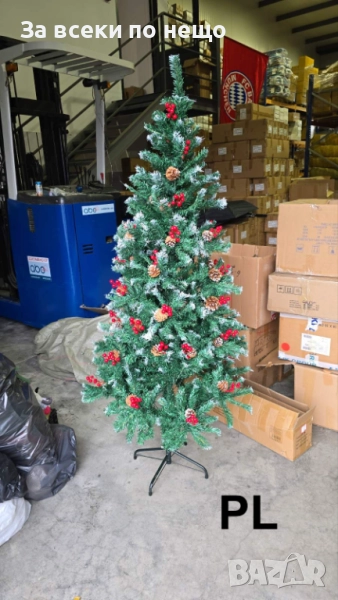 Внесете празничен уют и коледен дух във вашия дом с тази елегантна коледна елха с височина 180 см. Елхата е украсена с естествени на вид шишарки и ярки червени плодчета, които ѝ придават топъл и натурален облик. Лекото побеляване на клонките напомня за свеж зимен сняг и създава усещане за истинска зимна приказка.