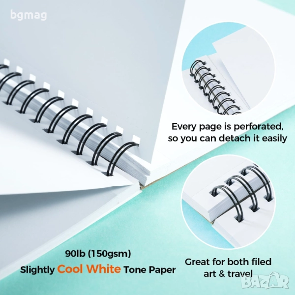 - СВЪРЗАНИ С ТЕЛ И МИКРО ПЕРФОРИРАНИ СТРАНИЦИ - Спиралното подвързване подобрява вашето рисуване и позволява лесно обръщане на страници. Прелистване или напускане на страниците по всяко време, това вече не е проблем. Благодарение на микроперфорираните страници можете лесно да откъснете произведения на изкуството и да ги споделите лесно.