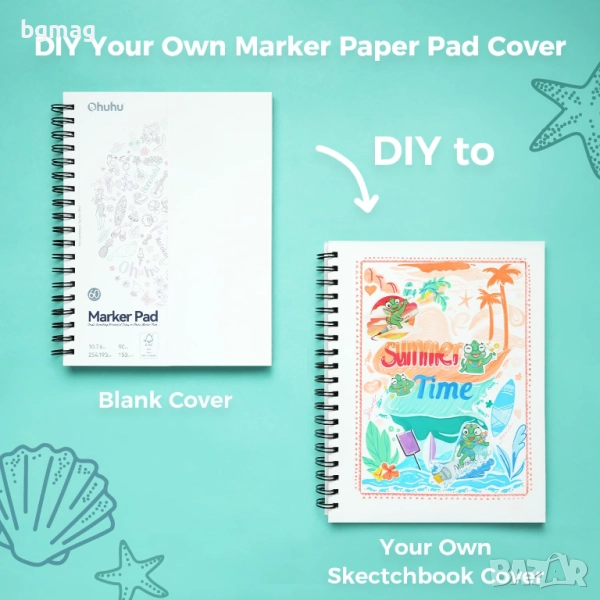 - Уникален дизайн на празна корица: проектирайте своя личен скицник! Корицата, изработена от 300gsm картонена хартия, ви дава възможност да експериментирате с рисуване, рисунки, стикери или други творчески идеи. Развихрете творчеството си и направете своя скицник с маркери уникално произведение на изкуството.
