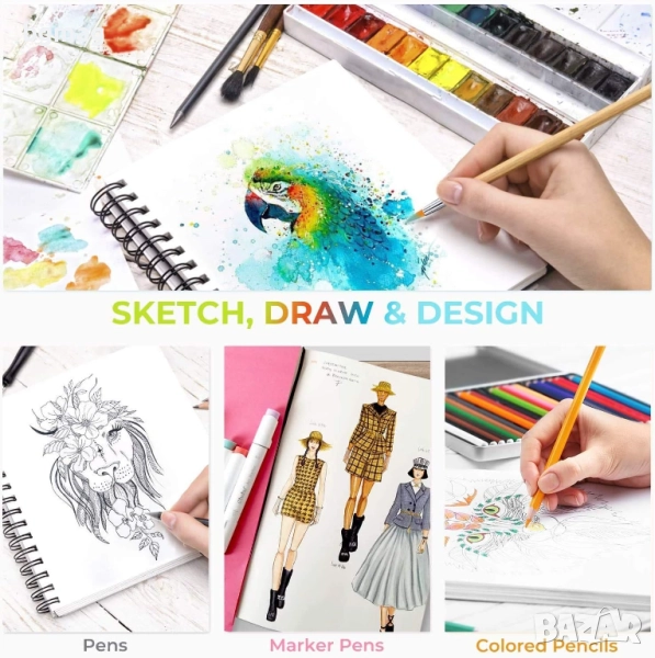 - Големи листове за рисуване: разширете възможностите си с големия скицник. Както начинаещи, така и опитни професионалисти в изкуството ще се насладят на свободата, която им предлага тази голяма и плътна хартия!