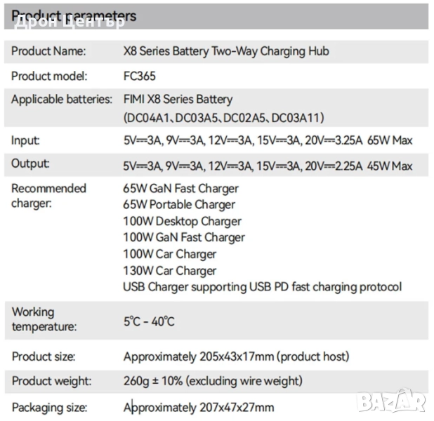 Хъб за зареждане на батерии FIMI X8 серия за FIMI X8 TELE MAX/ X8 TELE/ X8 PRO 2025/ X8 PRO/ X8 SE с двупосочно зареждане.