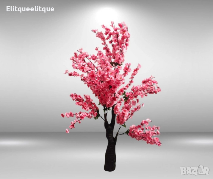 изкуствено дърво, вдъхновено от японската сакура. То впечатлява със своите пищни, светлорозови цветове и реалистичен силует, който ще внесе пролетно настроение целогодишно. Перфектен акцент за интериорна декорация, фотозони, събития или търговски обекти. Основни характеристики: Височина: 1.70 метра; Тегло: 2 – 2.5 кг; Цвят на цветята: Светлорозово с жълти тичинки; Материали: Клонки – гъвкава, но здрава телена конструкция, покрита с PVC; Стъбло – устойчиво на удари и натиск, с реалистична текстура; Устойчивост: Не избледнява на слънце, не се деформира; Поддръжка: Не изисква поливане или специални грижи.