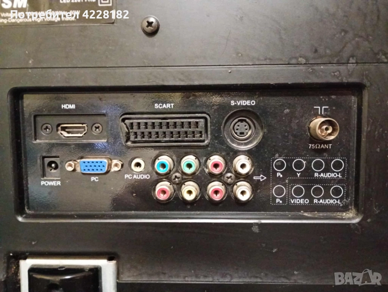HDMI, SCART, S-VIDEO, 75Ω ANT, AUDIO, R-AUDIO-L, VIDEO,Green/Blue/Red RCA, POWER.