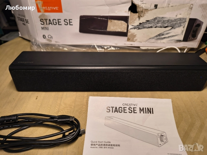 Creative Stage SE Mini компактен саундбар за подмонитор, широколентови неодимови говорители, пикова изходна мощност 24 W, BT 5.3/USB-C/жак за слушалки, функция за усилване на басите