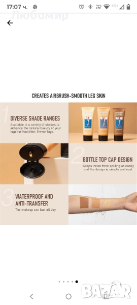 Грим крем за кракаНашият водоустойчив грим за тяло предлага три цветови опции, от които можете да избирате, като може да се използва не само за грим на краката, но и за прикриване на татуировки и разширени вени. С него можете да участвате във всяко важно събитие, което желаете.
