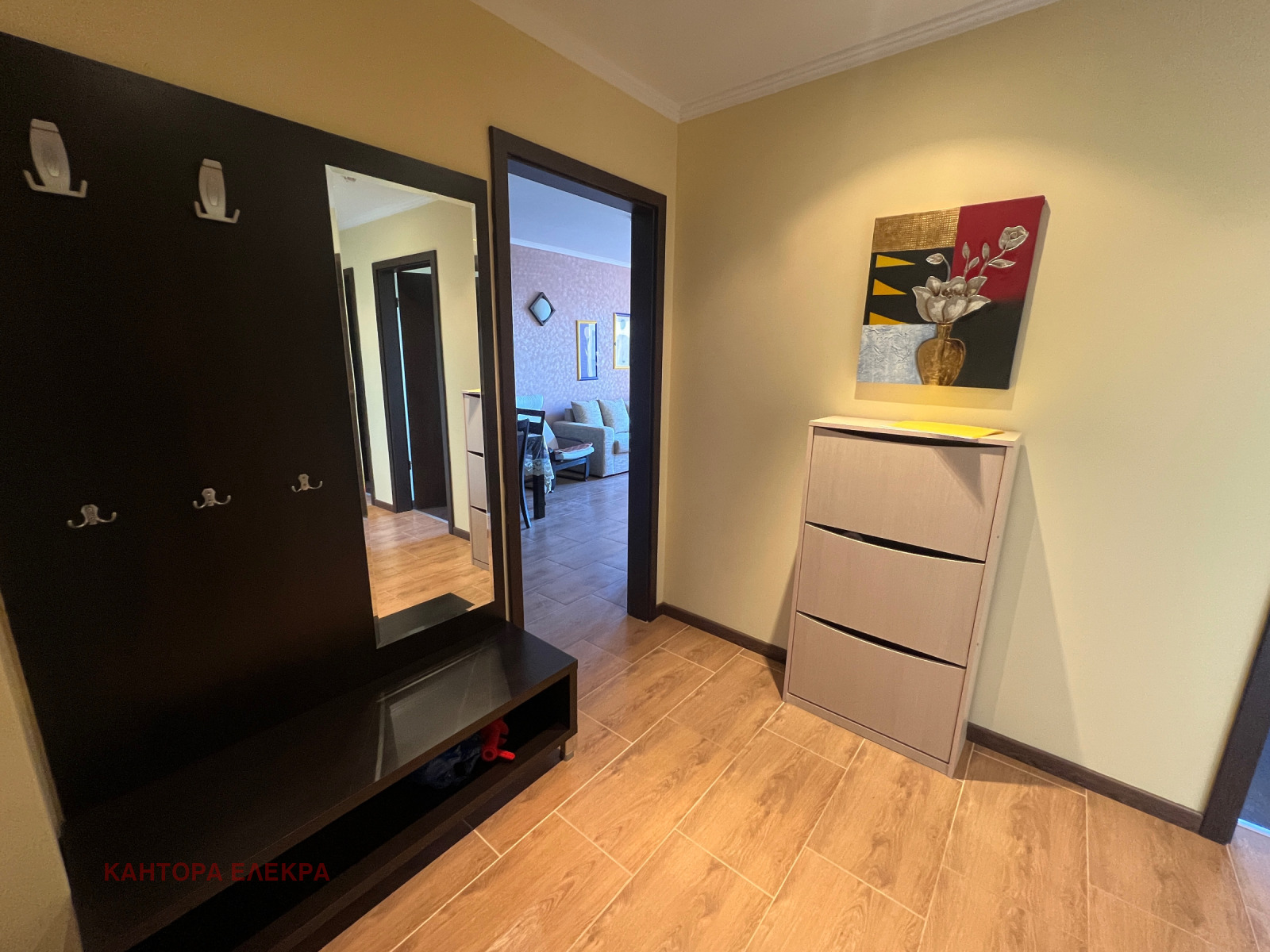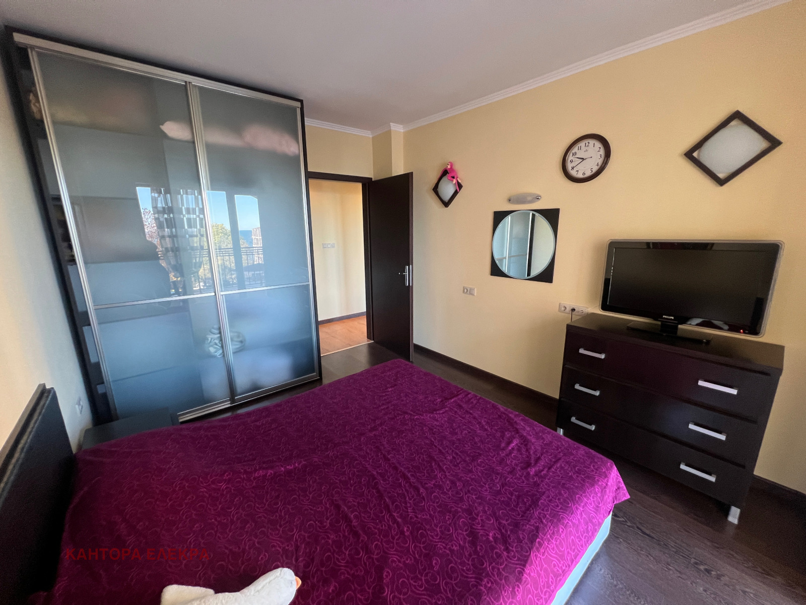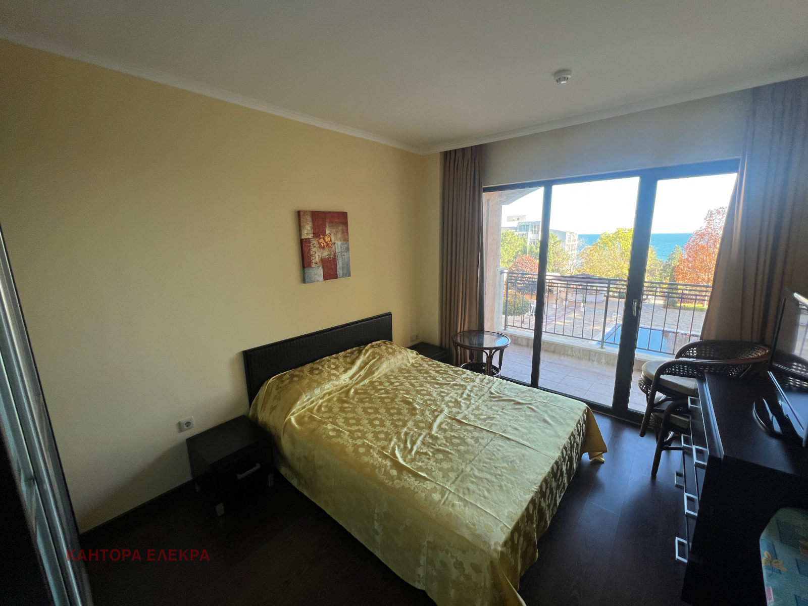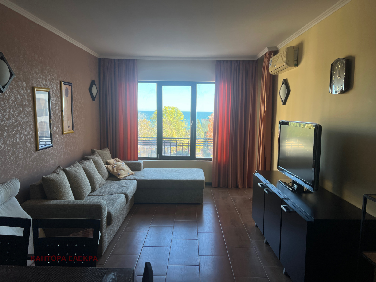 Апартаментът е разположен на 3-ти етаж в 6-етажна сграда и се състои от антре, тоалет,дневна с кухненски бокс, баня с тоалетна и душ, спалня, втора спалня и тераса с гледка към море и басейн. Напълно обзаведен и оборудван с климатик, хладилник, пералня, телевизори, кухненски бокс. Готов за нанасяне веднага!
