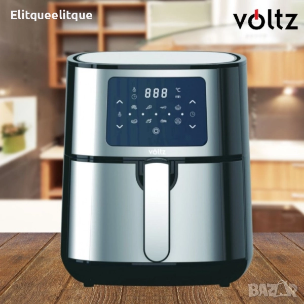 Фритюрник AirFryer Voltz, 1400W, 5.5 литра, Горещ въздух, Таймер, до 200°C, Сив, 2 ГОДИНИ ГАРАНЦИЯ