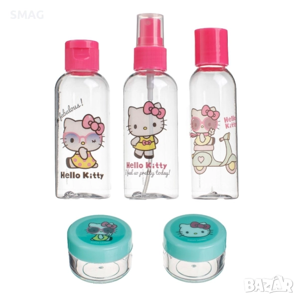 Практичен комплект прозрачни шишенца и бурканчета за пътуване с дизайн Hello Kitty. Идеален за съхранение на шампоан, лосион, крем и други козметични продукти в удобна чантичка с цип. Перфектен избор за пътуване, фитнес или ежедневна употреба.