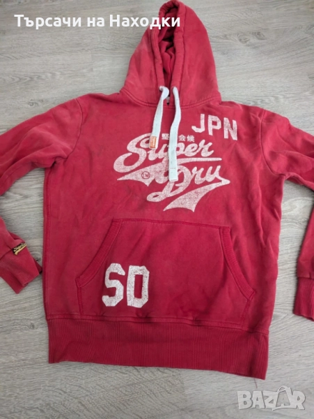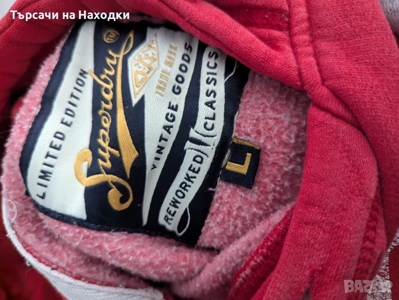 Мъжки суичър Superdry – размер L, сив с медни надписи