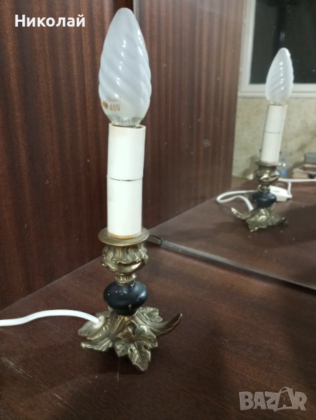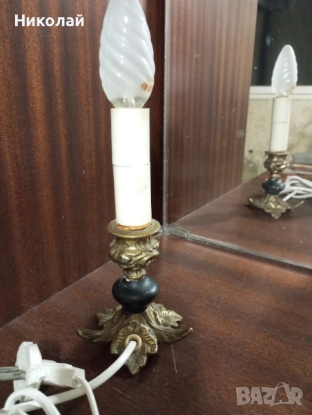 Малка бронзова лампа имитираща свещник → Обява 52188235