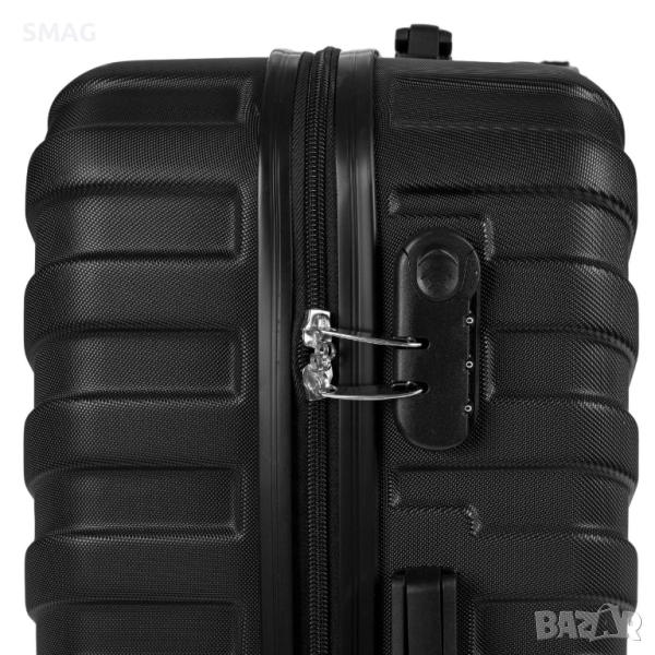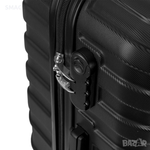 Лек и практичен куфар за пътуване с вместимост 35 литра и стилен черен дизайн с релефни линии. Разполага с 3 дръжки и 4 двойни въртящи се колела за лесно придвижване. Идеален избор за кратки пътувания и удобна организация на багажа.
