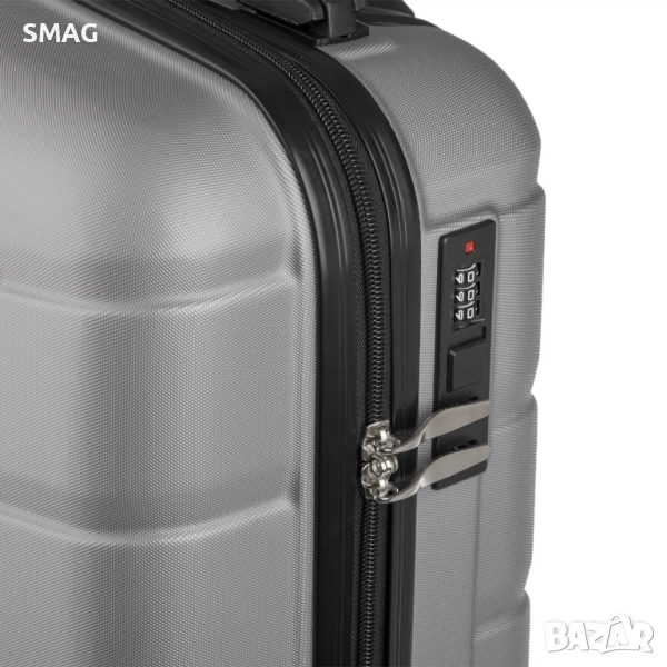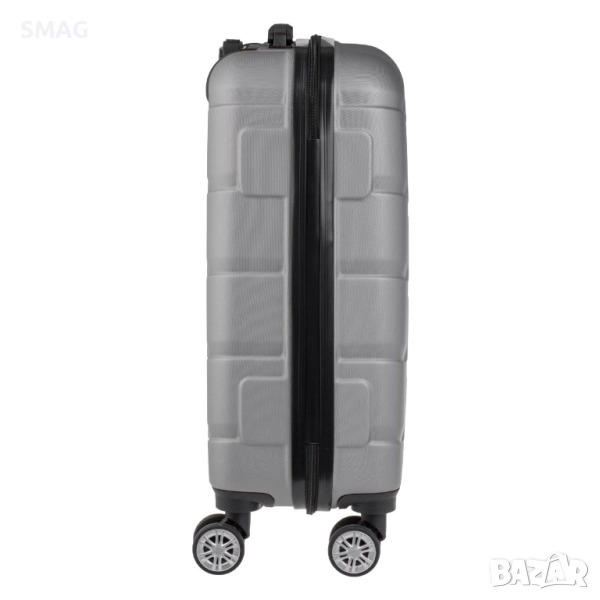Компактен куфар за ръчен багаж с вместимост 33 литра и елегантен сив метален дизайн с релефни линии. Разполага с 3 дръжки и 4 двойни въртящи се колела за лесно придвижване и удобство при пътуване. Подходящ за кратки пътувания и гарантира надеждна защита на вещите.