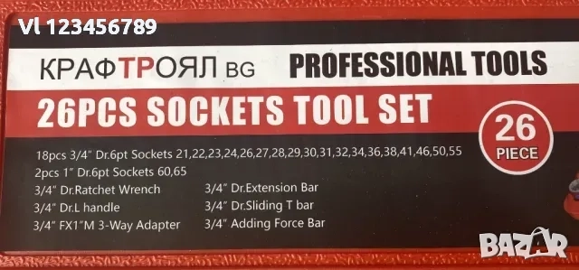 ПРОМОЦИЯ! КРАФТРОЯЛ 26 части 3/4” & 1” вложки от 21 до 65 мм -6 СТЕННО → Обява 52188527
