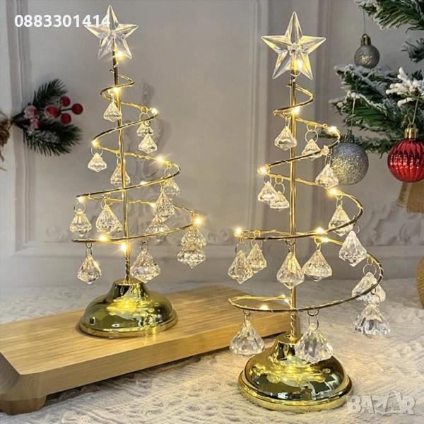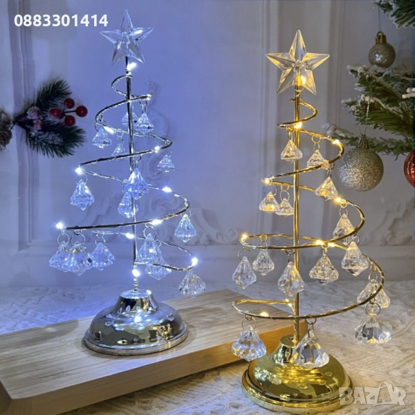 Декоративна коледна лампа с кристални висулки и светлинна украса. Подходяща за украса на спалня или друго помещение.