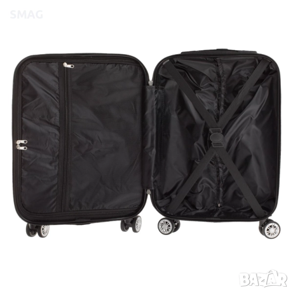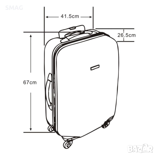 Куфар с вместимост 58 литра, изработен от сив метал с елегантни релефни линии. Разполага с 3 дръжки и 4 двойни въртящи се колела за лесно придвижване и удобство при пътуване. Идеален избор за по-дълги пътувания, осигуряващ защита на вещите.