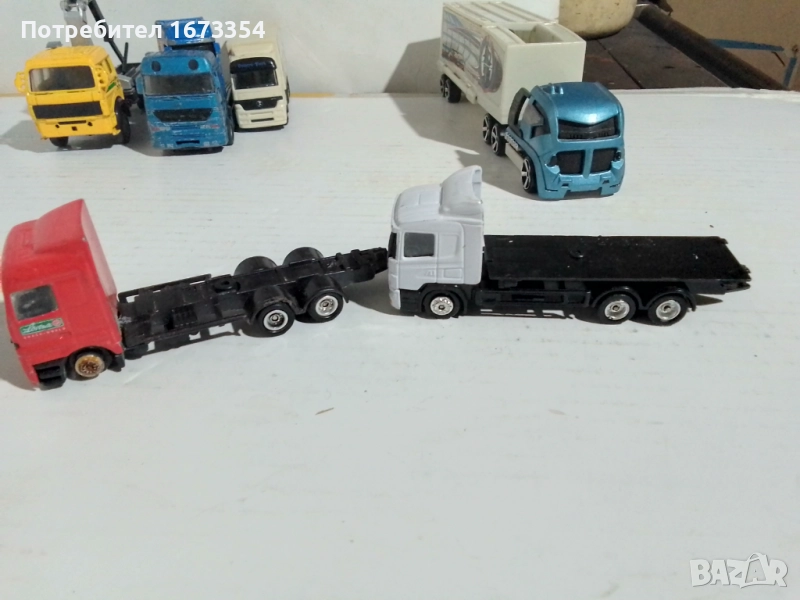 2)МЕРЦЕДЕС АКТРОС (червения шаси, не е влекач GEBOTEX LUDENSCHELA Цена 10.00 лв + СКАНИЯ R series ( бял )платформа за контейнери Цена 15.00 лв