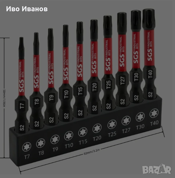 черна основа – издръжлива S2 стомана, дължина 50 мм, захват 1/4", размери