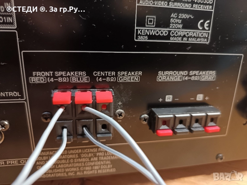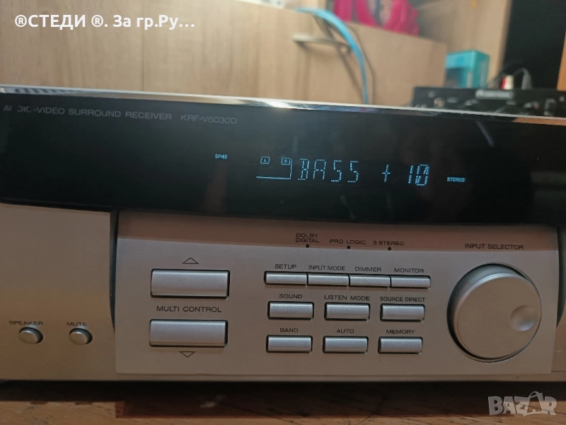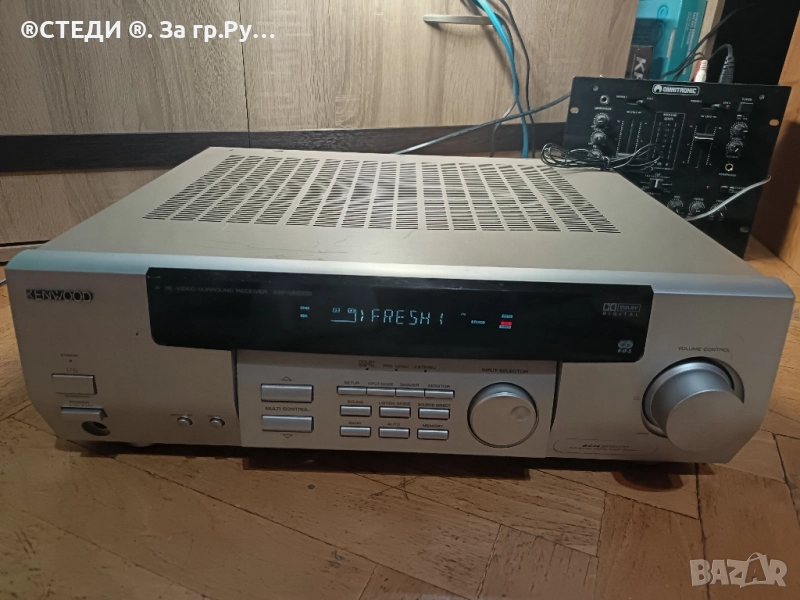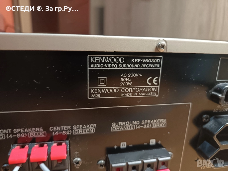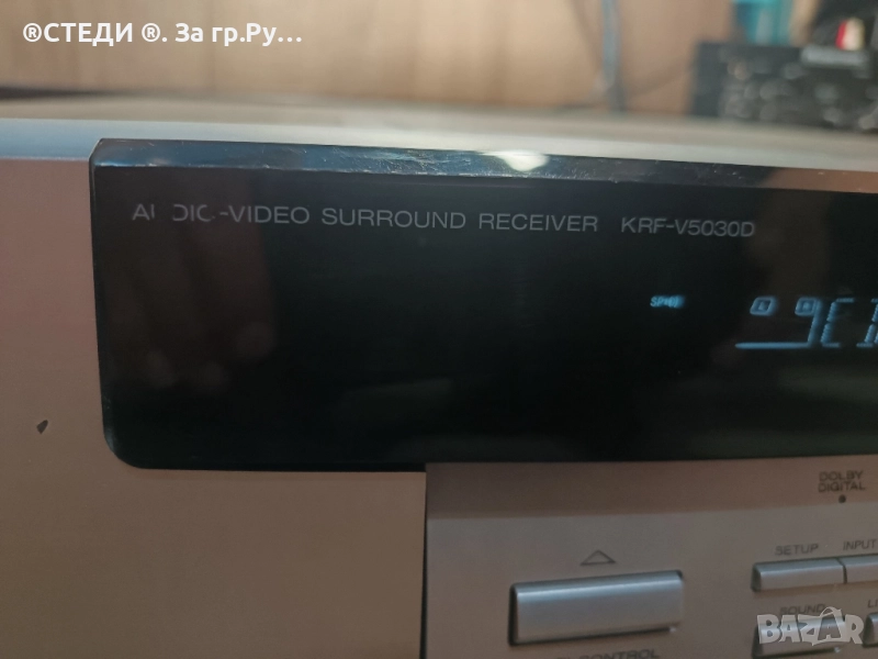 ресивър Kenwood KRF-V5030D. Доста мощен, с леки външни забелешки по горния капак, вижда са на снимките. 4-8ohm. Доста добре хваща станциите на радио.