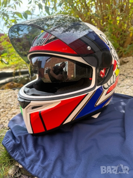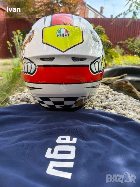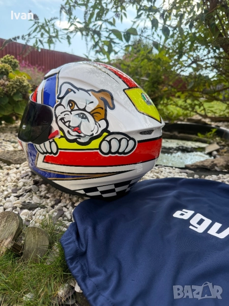 Супер запазена каска AGV размер Medium/Large. Не е изпускана и винаги е носена с боне. Има вградени слънчеви очила. Върви си със предпазно Agv чувалче.