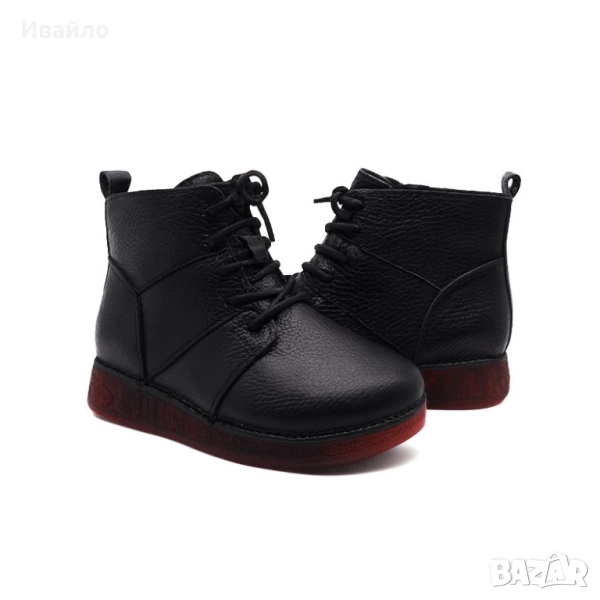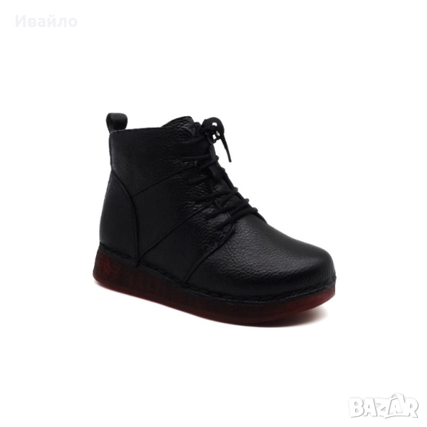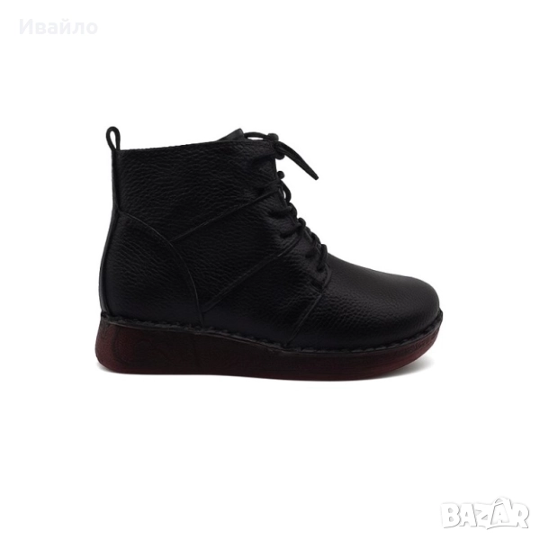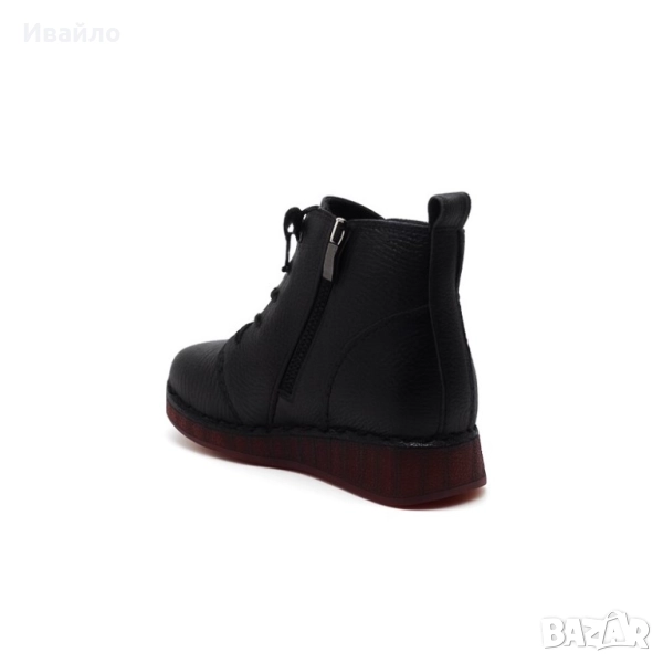 Дамски черни боти от естествена кожа с връзки и цип, 29,65 €