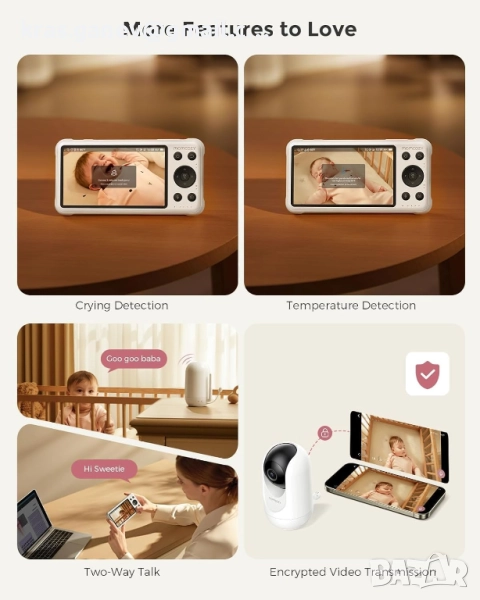 Достъп до семейно видео: Ангажирайте до 20 членове на семейството чрез споделен достъп до видео. С камерата за бебефон, вашите близки могат да проследяват развитието на детето и да празнуват заедно важни събития - дори от дълги разстояния.