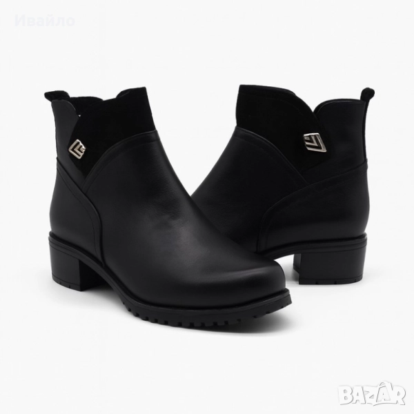 Тези елегантни дамски боти в класическо черно са изработени от висококачествена естествена кожа и съчетават стил, комфорт и практичност в едно. Изчистеният силует е допълнен с деликатен метален акцент и еластична вложка, която добавя характер и улеснява движението.