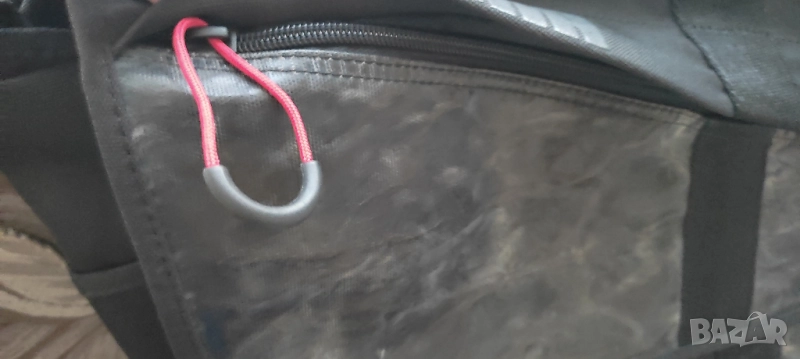 Външни два джоба под капака, единият от които е 26 см ширина и се закопчава с лепка, другият до него е достатъчно широк и дълбок за голяма 1-1.5л бутилка вода.