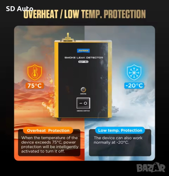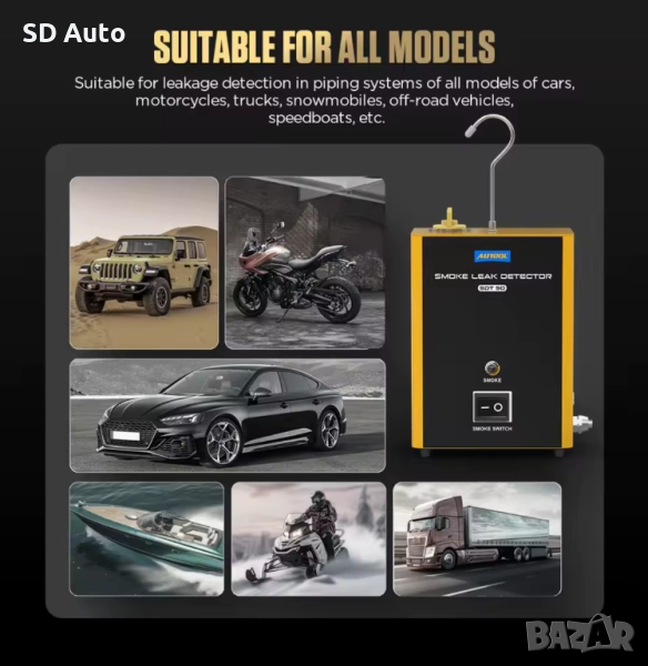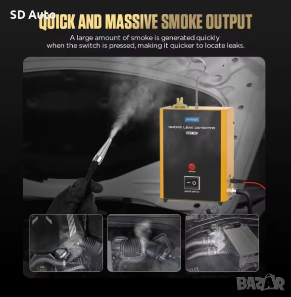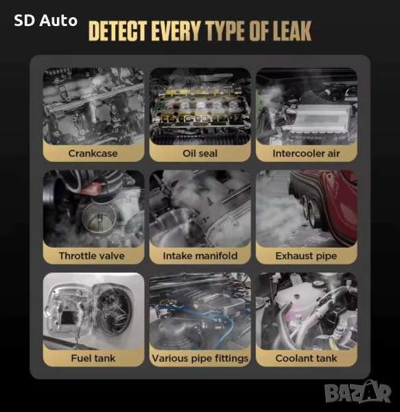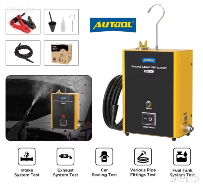 ***AUTOOL SDT50 е професионален инструмент за откриване на течове. Това ще ни помогне бързо и точно да позиционираме течове на автомобили, мотоциклети по тръбопроводната система, като например: тест на всмукателната система, тест на изпускателната система, тест на уплътненията на автомобила, тест на горивната система,вакумна система,турбопътищата,климатична система.