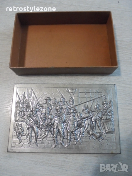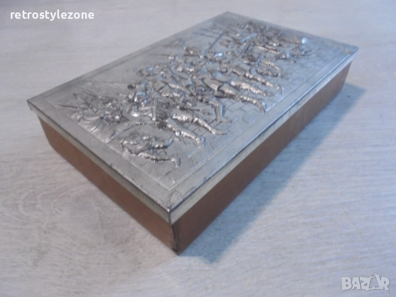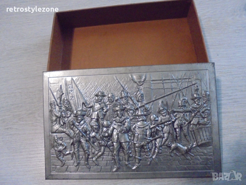 Ретро колекционерски артикул - стара кутия от пресован картон с красив релефен метален капак.