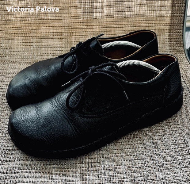 Модел от естествена кожа с връзки, характерен за линията затворени обувки на марката.