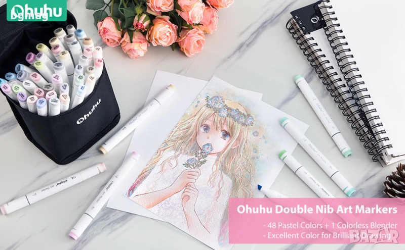Ohuhu Oahu-01 Art Markers Set-перманентни маркери, комплект 48 пастелни цвята