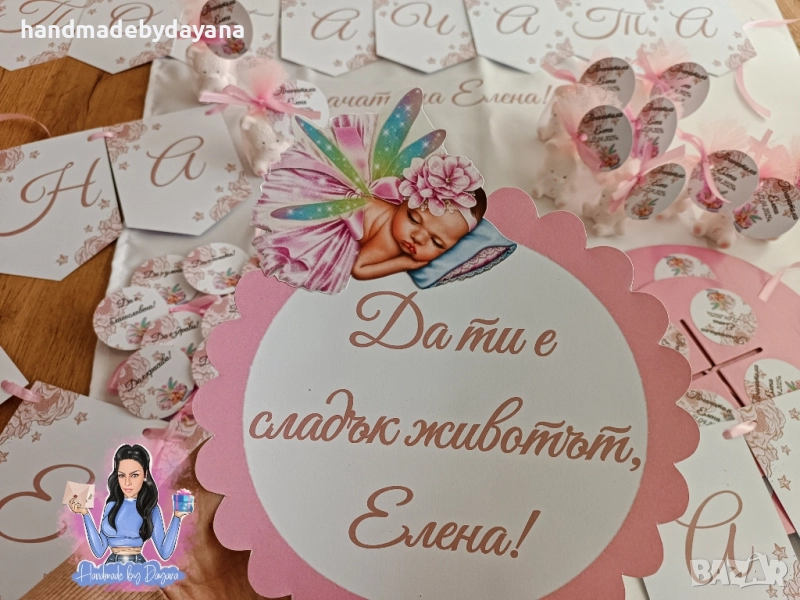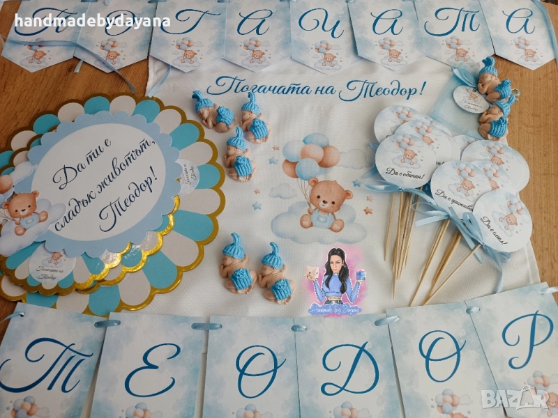 Персонализирана декорация и украса за бебешка погача с дизайн по → Обява 52191140