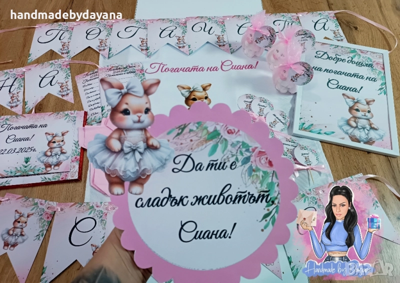 Изработка на персонализирана декорация за бебешка погача с дизайн по избор. Може да поръчате от тук или през сайта : www.handmadebydayana.com