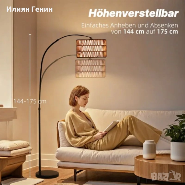 Гъвкавост на височината: Височината на тази лампа за хол може лесно да се регулира от 144 до 175 см, перфектно адаптирана към вашите индивидуални нужди от осветление – идеална за уютна и приветлива атмосфера във всяка стая.