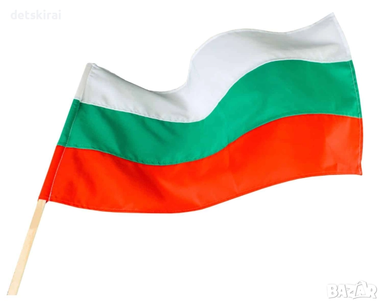 Българско знаме в размер 90 х 150 см. Подходящ както за носене в ръка, окачване на стена, дори и за поставяне на пилон. Флагът е изработен от сатен - лъскав полиестерен плат, т.н. изкуствена коприна.