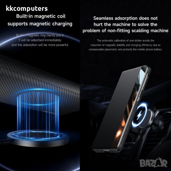 Вграденият магнитен пръстен поддържа магнитно безжично зареждане, като позволява бързо и лесно зареждане без да се сваля калъфът.