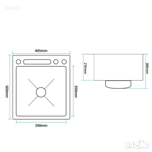 дълбока и просторна вана, подходяща за големи съдове и обемни продукти.