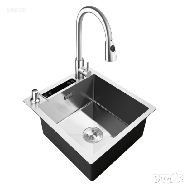 Мивката разполага с вграден тъч контролен панел с LED дисплей, който ви позволява да: