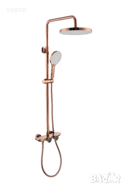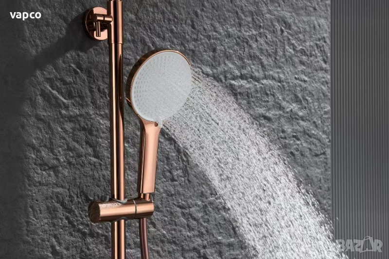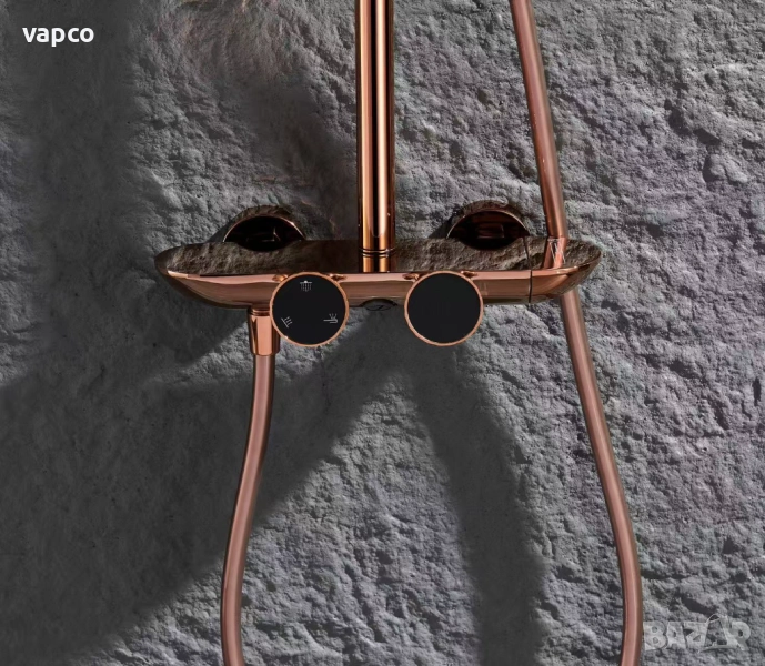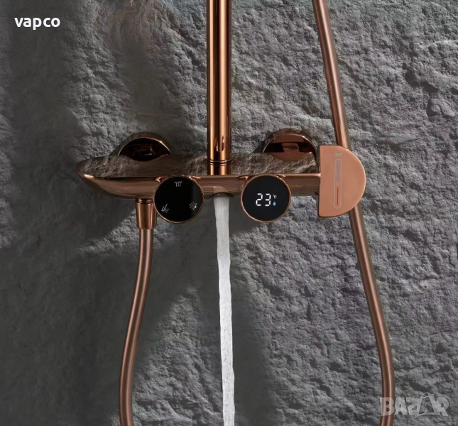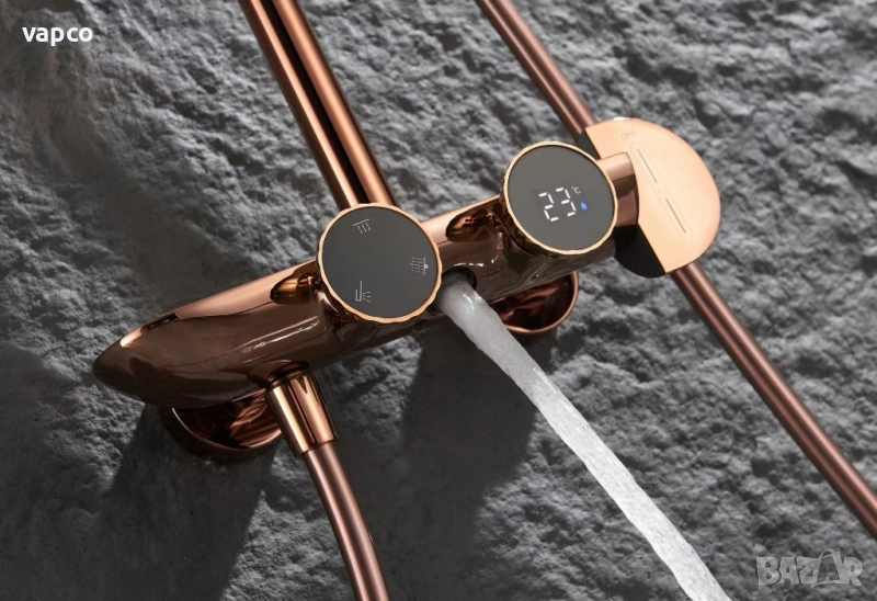 Внесете усещане за лукс и съвършен комфорт във вашата баня с тази интелигентна душ система с термостат и дигитален дисплей. Съчетавайки елегантен дизайн в розово злато, високотехнологични функции и прецизна терморегулация, този душ комплект превръща всяко къпане в истинско спа изживяване.