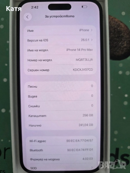 IPhone 14 pro max 256gb , снимка 1 - Apple iPhone - 52195723 IPhone 14 pro max 256gb , снимка 2 - Apple iPhone - 52195723 IPhone 14 pro max 256gb , снимка 3 - Apple iPhone - 52195723 IPhone 14 pro max 256gb , снимка 4 - Apple iPhone - 52195723 IPhone 14 pro max 256gb , снимка 5 - Apple iPhone - 52195723 IPhone 14 pro max 256gb , снимка 6 - Apple iPhone - 52195723 IPhone 14 pro max 256gb , снимка 7 - Apple iPhone - 52195723 IPhone 14 pro max 256gb , снимка 8 - Apple iPhone - 52195723 1/8
